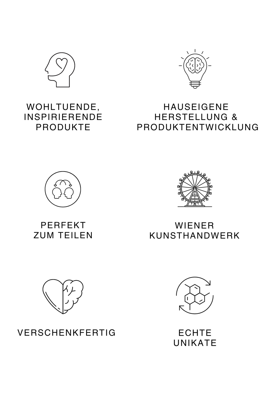 denen wir glücklichmachende Rituale und bewährte Materialien entdeckt und behutsam miteinander kombiniert haben. In unserem Wiener Atelier im 16. Bezirk werden sie mit Sorgfalt und Nachhaltigkeit von uns hergestellt. Für alles, was wir nicht selbst machen können, setzen wir auf "handverlesene" Lieferanten, die wie wir Wirtschaftstheorie mit Herz und Seele, Hausverstand und Menschlichkeit verbinden.