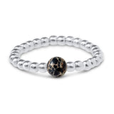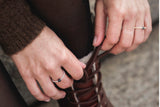 Hoewel de kralen die we gebruiken gemaakt zijn van massief sterling zilver of onze vergulde sterling zilveren kralen een zeer dichte vergulding hebben van 1 micron (ter vergelijking: kostuumjuwelen zijn meestal 0,3 micron), raden we je aan de ring te verwijderen voor persoonlijke hygiëne om de natuurlijke schoonheid lang te behouden.