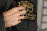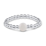Onze ringen bestaan ​​uit 2 mm dikke sterling zilveren 925 kralen of vergulde 925 sterling zilveren kralen , een unieke halfedelsteen en een scheurvast , gepolijst elastisch draad.
